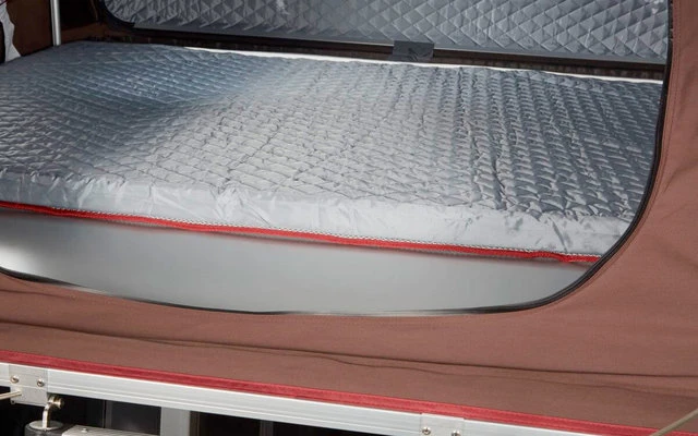 Luftkammerfutter an der Innenseite der Hartschale und an der Matratze sorgt für wohlige Atmosphäre im Dachzelt. Die Innenseite der Hartschale ist mit einer dekorativen Weltkarte versehen und lädt zum Träumen von fernen Ländern ein.
