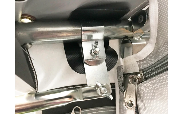 Das Castel hat eine Tiefe von 230 cm und ist speziell entwickelt für die Walker Vorzelte. Es ist aus Ten Cate 240 g/m2 Gewebe gefertigt und wird mit einem speziell dafür entworfenem Stahlgerüst komplett geliefert. Das Castel wird unter den Vordachstangen des Vorzeltes befestigt. Für Pioneer, können Sie mit dem Adapterset das Castel auch beim Walker Pioneer 240 montieren. Zustätzlich können auch Seitenwände montiert werden, lieferbar in der Farbe des Vorzeltes, mit Fenstern. Die Seitenwände sind austauschbar.